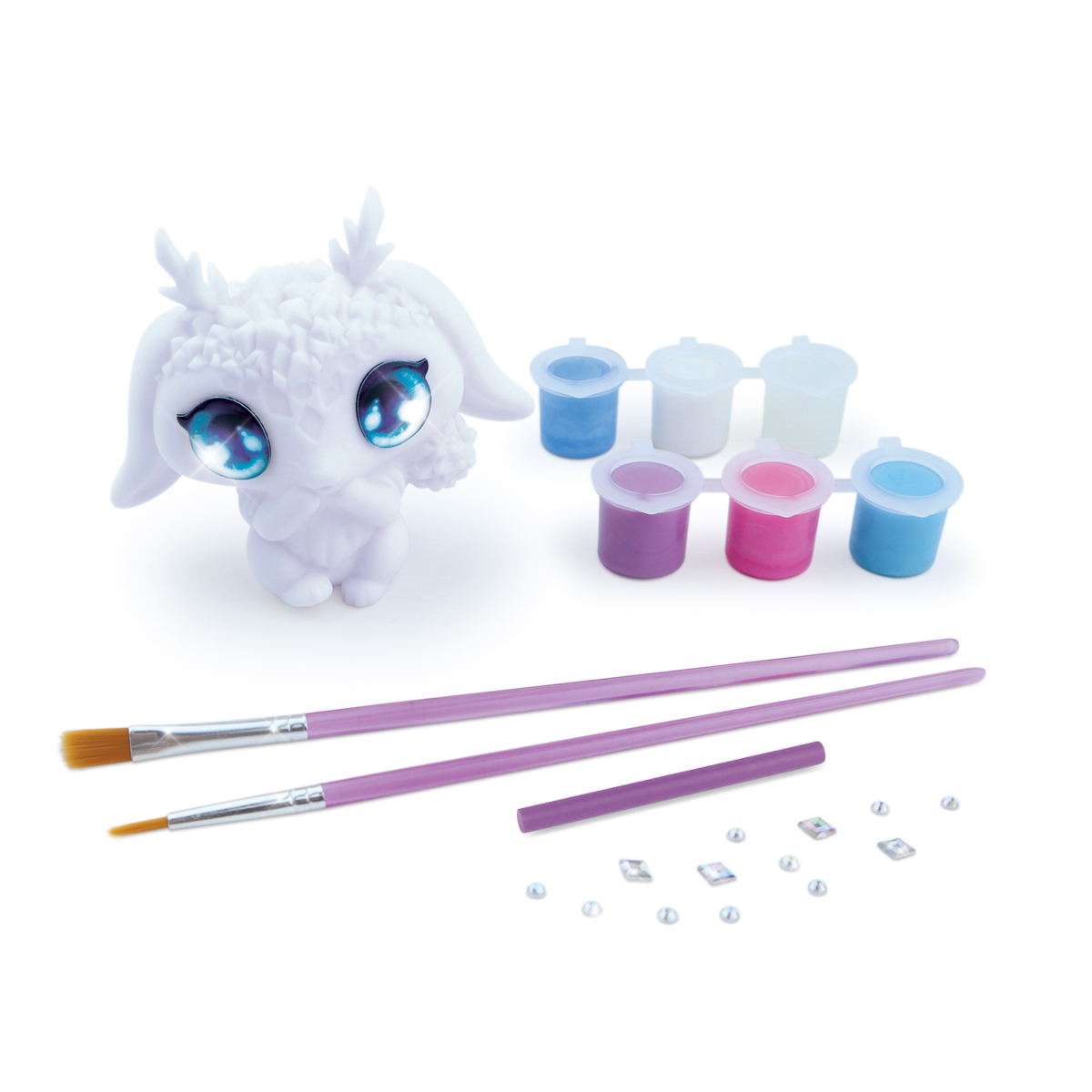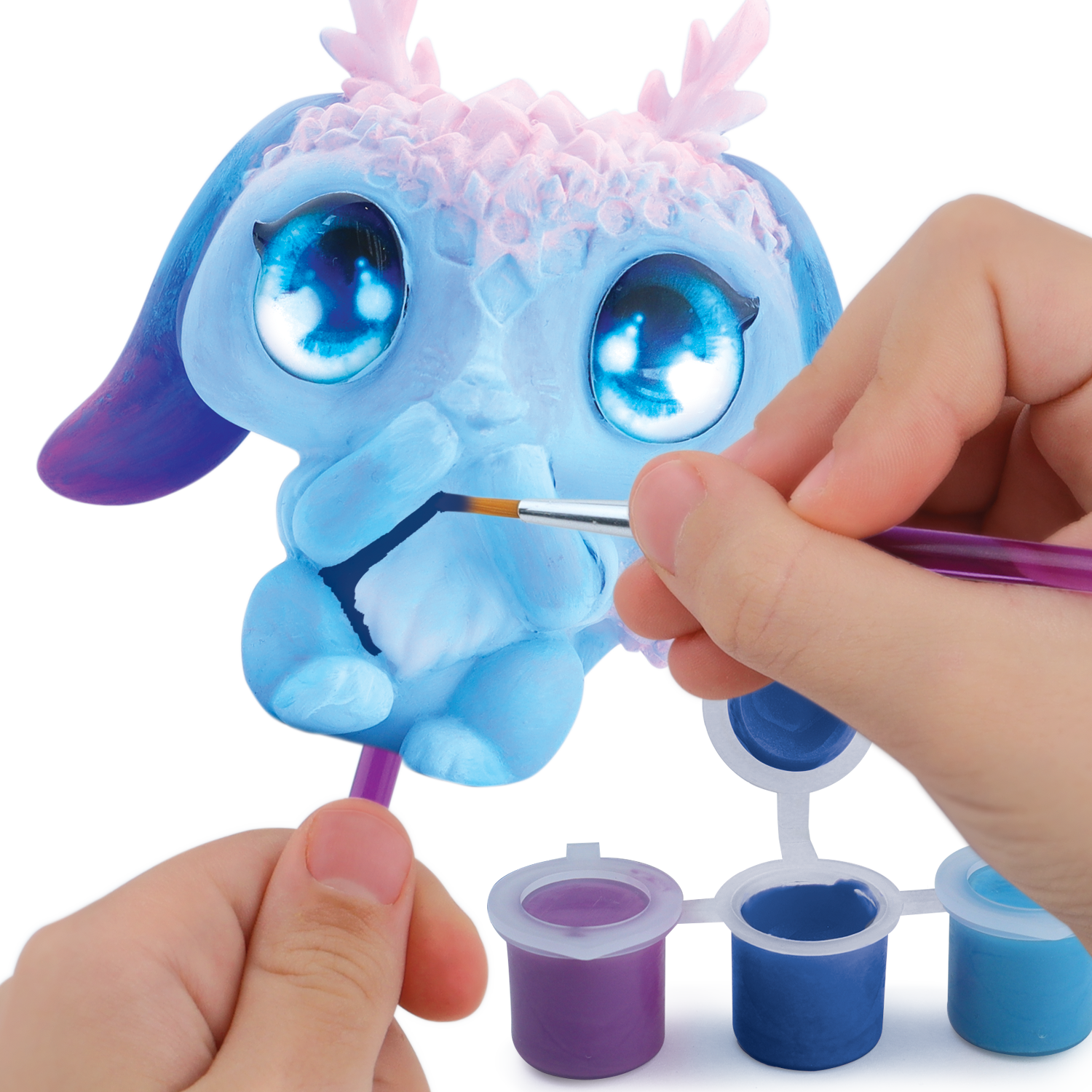 Pomaluj, udekoruj cyrkoniami i zbierz kolekcję 6 fantastycznych stworzeń o pięknych, błyszczących oczach! W zestawie artystycznym znajdziesz figurkę gotową do ozdabiania, a także farby i wiele połyskujących dodatków – lakier czy kryształki.