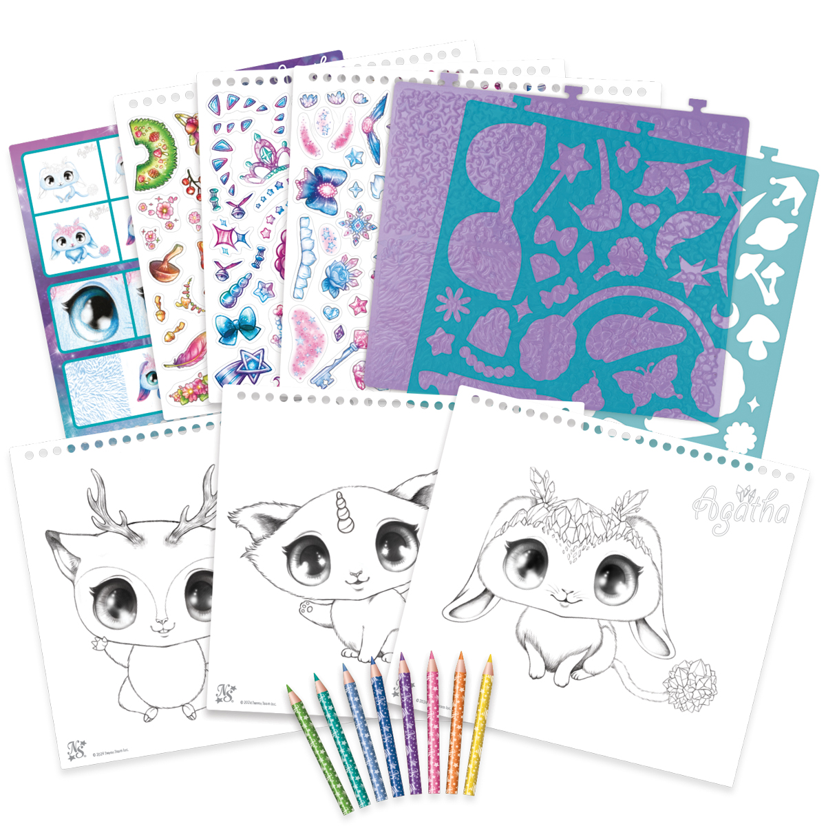 Nebulous Stars – Kreatywny szkicownik z kredkami i szablonami – magiczne zwierzątka 7+