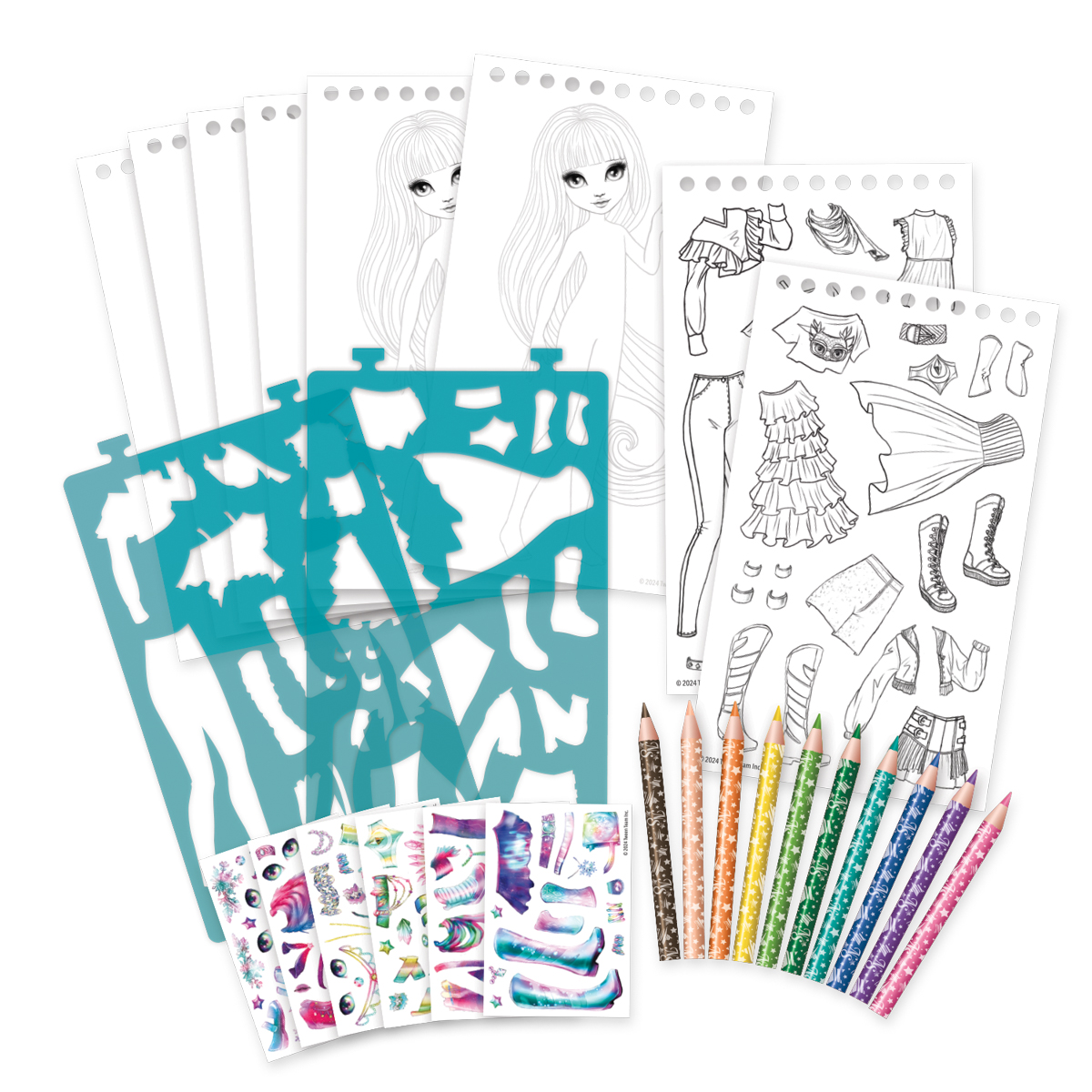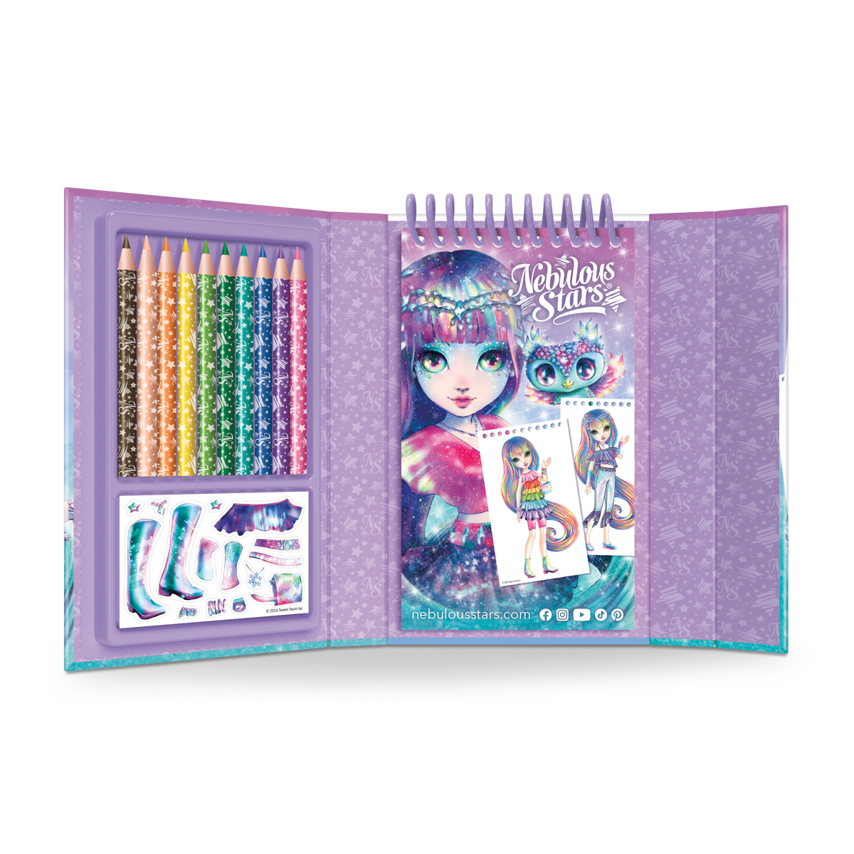 Nebulous Stars – Szkicownik do projektowania ubrań z kredkami i naklejkami – Isadora 7+
